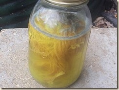 This years took a little longer to turn back into white woad but it worked and again it turned a yellow so I guess that's the color its supposed to be. Sorry for the poor picture of this point, the jar isn’t clear and wasn’t showing up properly. So I decided to take a pick from top down manly bubbles but a small area of the dye itself.