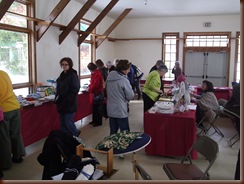 As promised I did take my loom and it will be there next week as well. Since I was not able to get it set up before opening day. I decided to take and set it up there. My thought was, the norm with weaving demo’s is the loom is set up and you just see the person weaving. You never see the process of setting the loom up so you can weave a piece. I changed that yesterday by setting up the loom there. The response was a good one, of course every one said they would never have the patience to do it. (I think if you just relaxed everyone could at least try it.)